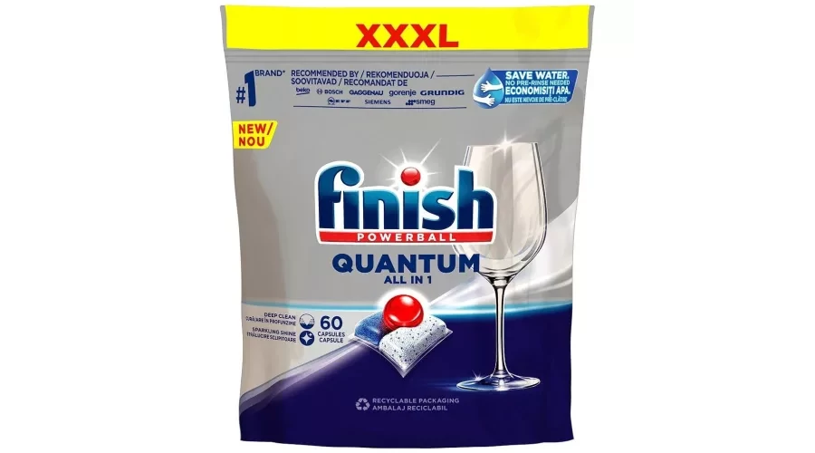 A Finish Quantum kiváló tisztaságot és ragyogást biztosít, valamint további védelmet nyújt az üvegkorrózió ellen. A Finish Powerball elmossa a maradékot a ragyogás érdekében, még a legnehezebb vízviszonyok között is. A Finish Quantum újrazárható zacskóban kapható, így nincs szükség az egyes kapszulák kicsomagolására. |