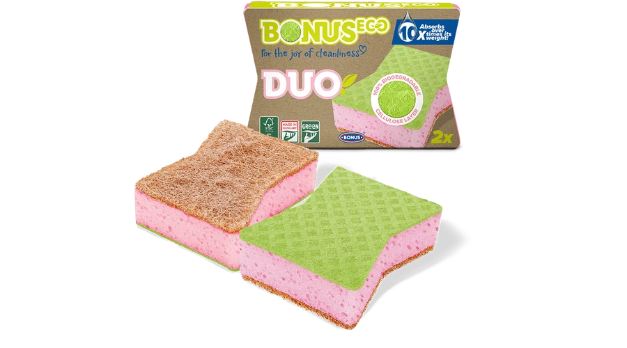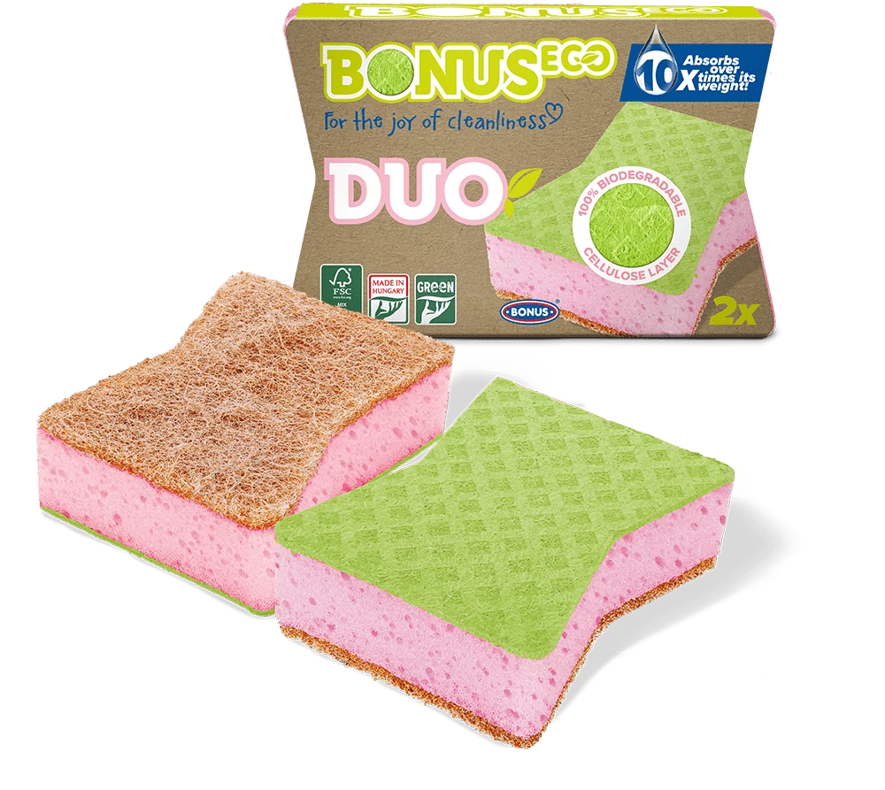 10-szeres nedvszívó képességű cellulóz réteggel ellátott, természetes alapanyagot is tartalmazó dörzsivel készült karcmentes mosogatószivacs. Egyedi formával az ergonomikus használathoz. |