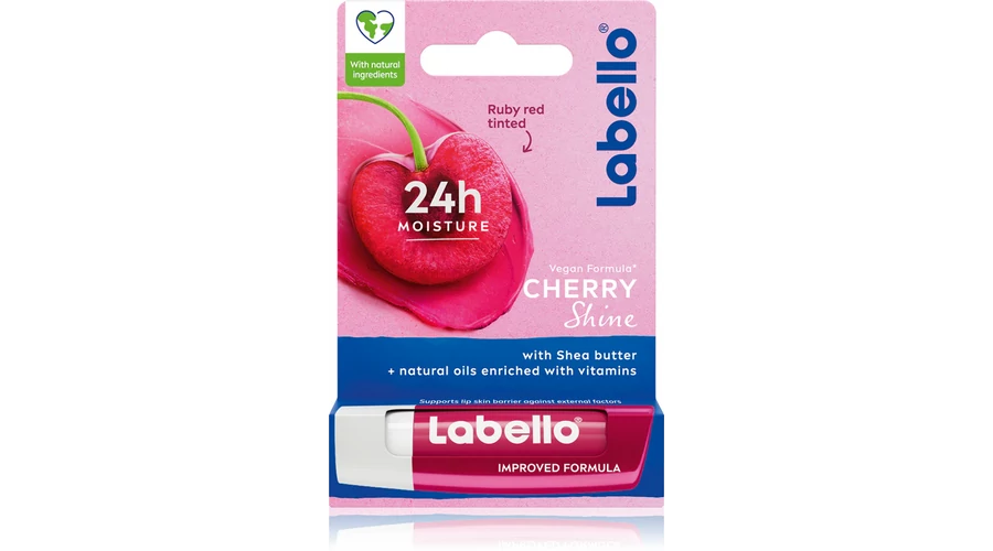 Felejtse el a száraz és kicserepesedett ajkakat. A Labello Cherry Shine színezett ajakbalzsam 24 órás hidratálást biztosít, ugyanakkor gyönyörű, természetes színt kölcsönöz ajkainak. A természetes olajokat és shea-vajat tartalmazó ápoló összetételnek köszönhetően az ajkai tápláltak, puhák és fényesek lesznek. A balzsam azonnal rásimul az ajkakra, hosszan tartó hidratálást biztosít, és megvédi a kiszáradástól és a kirepedezéstől. Ráadásul vegán és természetes forrásból származó összetevőkből készül, a stick és a csomagolás pedig teljes mértékben újrahasznosítható. Élvezze a lágy színt és a cseresznye illatát minden nap. A Labello Cherry Shine ajakbalzsam tökéletes társ a szép és egészséges ajkakért egész nap. Tulajdonságai: